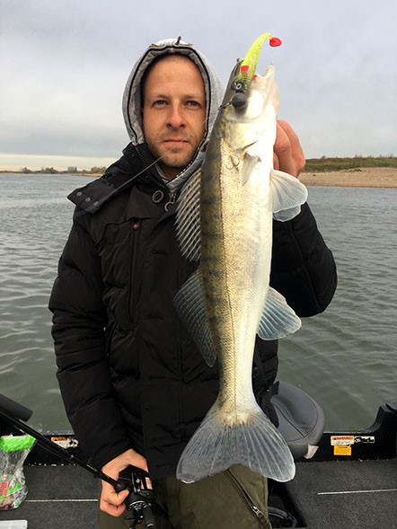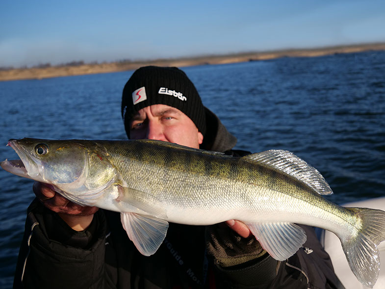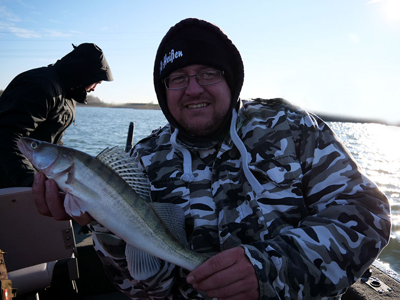 Mit 2 Gästen fuhr ich gestern auf das Gewässer, wo noch vor zwei Tagen ein regelrechtes Zandergewitter über uns hereinbrach. Doch diesmal war nichts mit Glanz & Gloria, diesmal war alles anders! Es lief sehr zäh und wir mussten uns jeden Fisch hart erkämpfen. Die ungewöhnlich niedrige Anzahl der Sicheln auf dem Sonar, reflektierte die schwache Biss-Frequenz, uns so entschied ich mich für einen Spot-wechsel und wagte einen restart. Die neue Location versprach Optisch eine Menge und es sollten keine 5 minuten vergehen bis wir die ersten Rückmeldungen bekamen. Wir fischten uns dann den restlichen Nachmittag bis auf 34 Fische und waren am Ende mit dem Ergebnis mehr als Zufrieden. Mich persönlich freut es am meisten, das ich wieder neue Leute für die Faszination Vertikal-Angeln begeistern konnte.