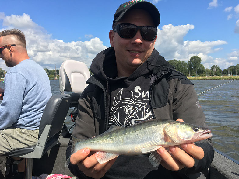 Während wir beim letzten mal noch mit den heissen Temperaturen zu kämpfen hatten, verlangte dieses Wochenende ein kräftiger Nordwest-Wind alles von uns ab. An ordentliche Köderführung war kaum zu denken, und trozt der "Schaukelei" konnten wir am Ende noch 19 Fische zählen. Einmal Quer durch Neptun´s Garten, war von Zander, Hecht und Barsch,- über Rotauge bis hin zu einem Vertik(aal) alles dabei (:
