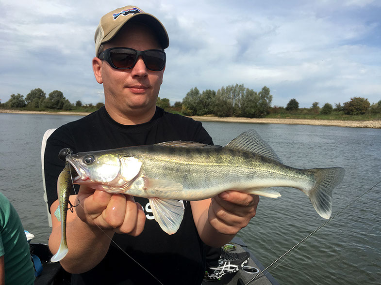 Wie schon beim letzten mal, hatte ich auch diesmal wieder einen absoluten Neueinsteiger zu Gast. Und nach einer kurzen Einweisung begann für Ihn die Reise in die Vertikale-Galaxy. Das Wetter spielte mit und strahlender Sonnenschein sollte den ganzen Tag über unser stetiger Begleiter sein. Was Anfangs noch recht zäh begann, sollte später in einer wahren Beissorgie enden. Den ganzen Tag über probierten wir sämtliche Farben und Aktionen durch und trafen dabei immer wieder den Nerv der kampfstarken Räuber. Der Zähler pendelte sich am Ende auf 34 Fische ein und ein mitreißender Tag flog leider viel zu schnell an uns vorbei.