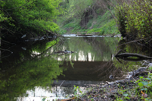 Unterspülte Ufer, überhängende Äste, große Steine im Flussbett, tiefe Gumpen oder ausgespülte Kurven.
