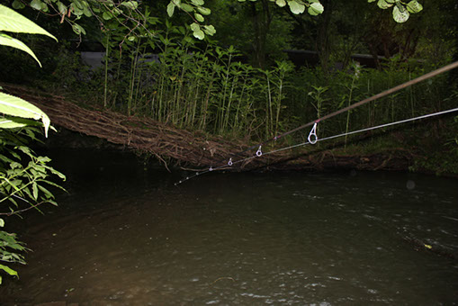 Angespültes Treibgut, was sich im Bachbett ansammelt dient den Fischen ebenfalls Hervorragend als Unterschlupf und Deckung. Hier lauern Sie Energiesparend im Strömungsschatten und warten auf Ihre Beute.