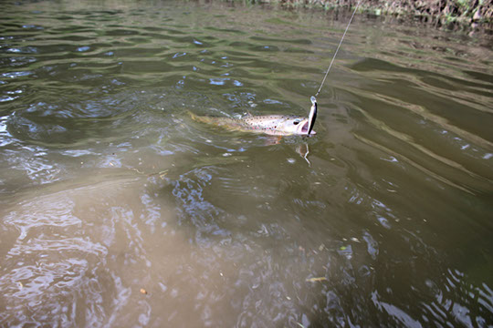 Das Spinnfischen mit Kunstködern an kleinen Naturbächen ist eine sehr Aufregende und Anspruchsvolle Angelei mit vielen Facetten. Gefühlvolle Köderkontrolle bei Unterhandwürfen verlangen dem Angler einiges ab. Doch mit ein bisschen Übung gelingt es die überhängenden Äste, Baumstämme, und Unterstände der Räuber attraktiv zu befischen.