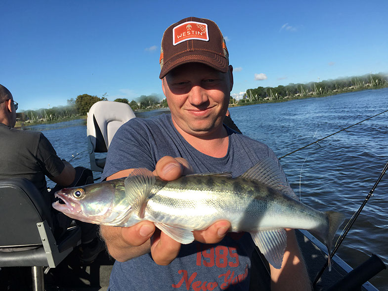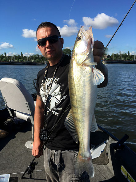 Ein abwechslungsreicher und spannender Tag liegt hinter uns. Den Anfang machte bereits morgens vor Abreise eine Reifenpanne. Die Überraschungen sollten sich dann im späteren Tagesverlauf noch häufen. Kurz nach dem Slippen fuhr sich mein "Stellvertreter" erst einmal geschickt auf einer Sandbank fest. Nachdem wir das Boot mit vereinten Kräften wieder befreien konnten um endlich mit dem Fischen zu beginnen der nächste Höhepunkt. Ein merkwürdiger Einschlag direkt unter dem Boot gefolgt von einem spektakulären Drill. Nach 10 Minuten stand fest...Auch Rapfen haben eine schwäche für vertikal geführte Gummi´s. Leider stieg das kapitale Exemplar kurz vor dem Keschern aus. Zu den Zandern und Barschen gesellte sich dann zum späten Nachmittag hin noch ein seltener Gast zu uns, welcher sich ebenfalls als Vertikal-Gourmet entpuppte. Mit insgesamt 30 Fischen beendeten wir unsere kleine "Raubfisch-Safari" und freuen uns schon auf die nächste Herausforderung.