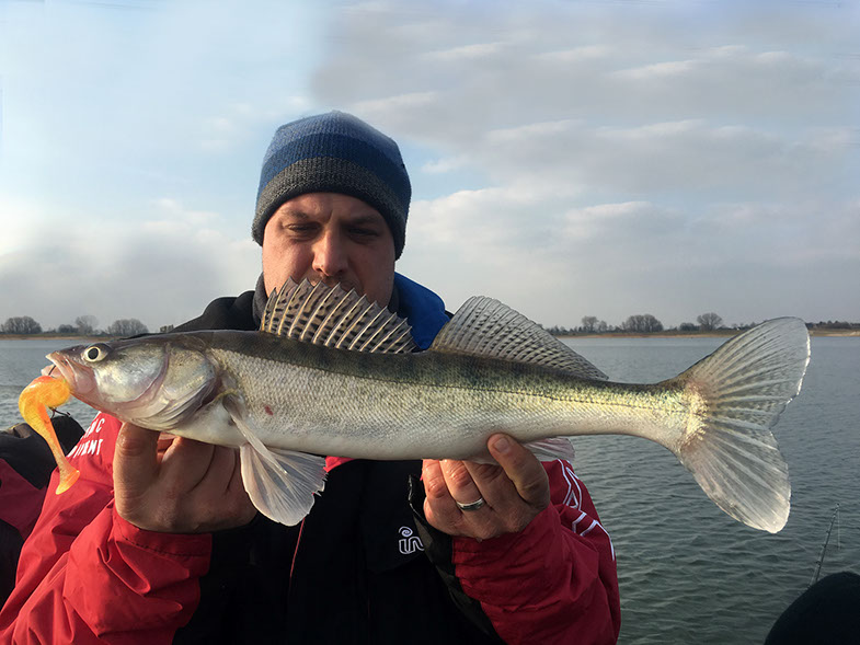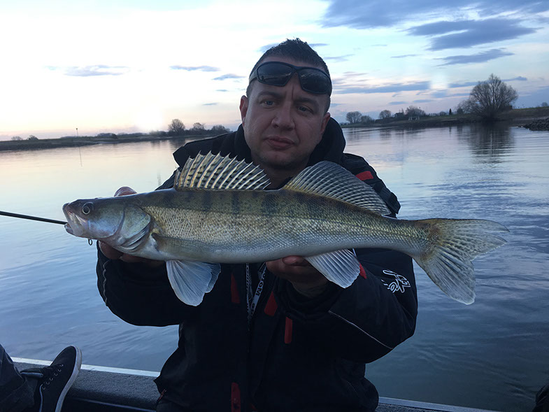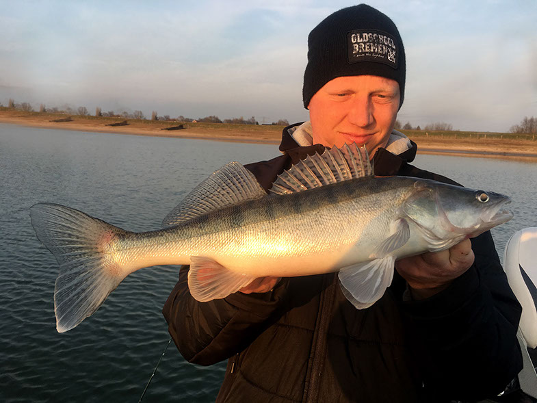 Ob´s stürmt oder schneit, ob die Sonne uns lacht. Der Tag glühend heiß oder eiskalt die Nacht. Dieses mal zumindest hatten wir das Wetter auf unserer Seite und konnten jeden Winkel im Gewässer befischen. Mit an Bord ein neuer Vertikal Newcomer, der gleich mit 6 Fischen und seinem Personal Best von 76 cm seinen Einstand feierte. Top Bedingungen und ein Traumstart in die "Strich-angelei". Mit 35 Fischen und nochmal so vielen Attacken war es für meinen Gast ein unvergessliches Erlebnis.