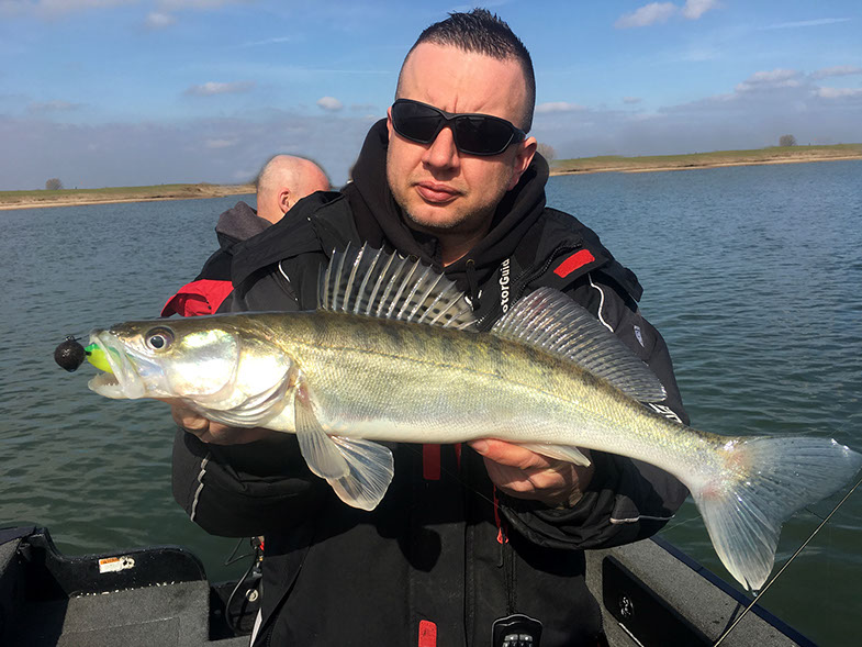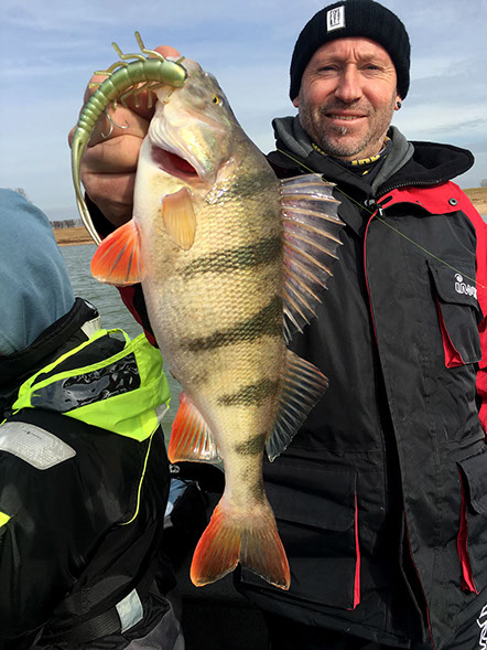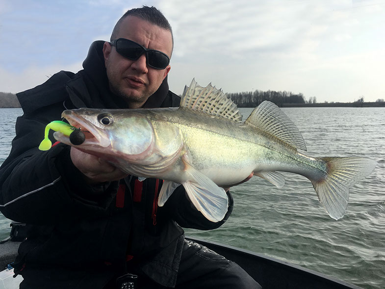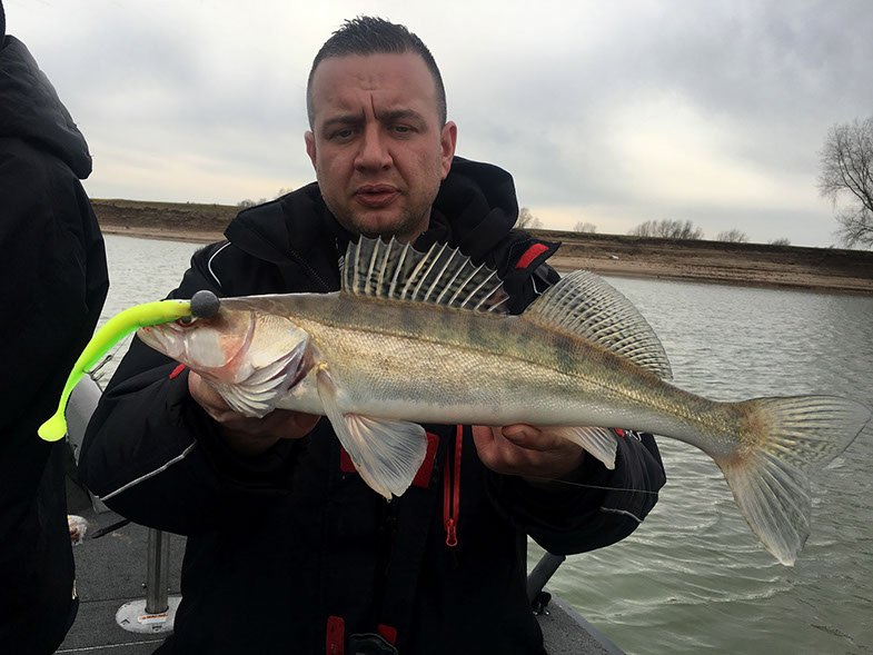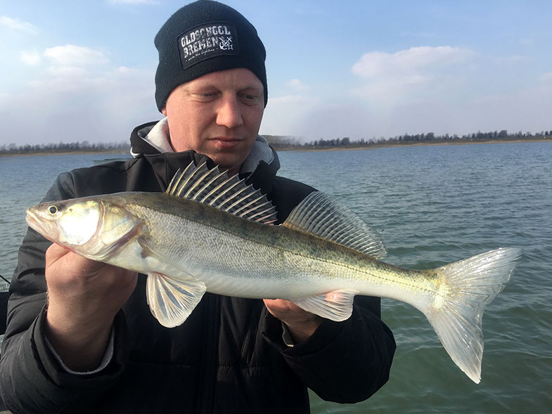 Auf die Pflicht folgt die Kür. Nachdem wir in den letzten Wochen das Privileg besaßen, die Gewässer fast ausschließlich für uns alleine zu beanspruchen, lockten die milden 16 grad nun deutlich mehr Angler auf Ihre Boote. Und auch Ich durfte einen neuen Gast Herzlich Willkommen heißen und ihn auf den "Vertikalen-Planeten" entführen. Nach kurzer Einweisung legten wir los und klopften den Grund auf hungrige Räuber ab. Unser Greenhorn setzte die Theorie souverän in die praxis um und drillte gleich zu beginn einen 70 er Zander sicher in´s Boot. Ein perfekter start in die "Vertical-World" des Zander angelns. Bei diesem herrlichen Wetter kamen wir am Ende auf 37 Fische und 40 weitere Bisse.