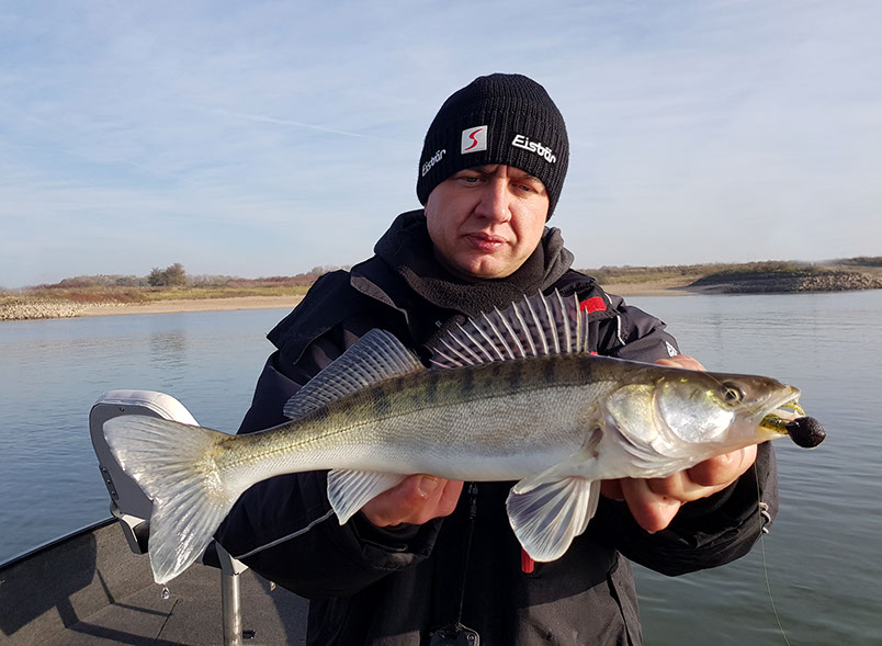 Mit 2 Gästen fuhr ich gestern auf das Gewässer, wo noch vor zwei Tagen ein regelrechtes Zandergewitter über uns hereinbrach. Doch diesmal war nichts mit Glanz & Gloria, diesmal war alles anders! Es lief sehr zäh und wir mussten uns jeden Fisch hart erkämpfen. Die ungewöhnlich niedrige Anzahl der Sicheln auf dem Sonar, reflektierte die schwache Biss-Frequenz, uns so entschied ich mich für einen Spot-wechsel und wagte einen restart. Die neue Location versprach Optisch eine Menge und es sollten keine 5 minuten vergehen bis wir die ersten Rückmeldungen bekamen. Wir fischten uns dann den restlichen Nachmittag bis auf 34 Fische und waren am Ende mit dem Ergebnis mehr als Zufrieden. Mich persönlich freut es am meisten, das ich wieder neue Leute für die Faszination Vertikal-Angeln begeistern konnte.