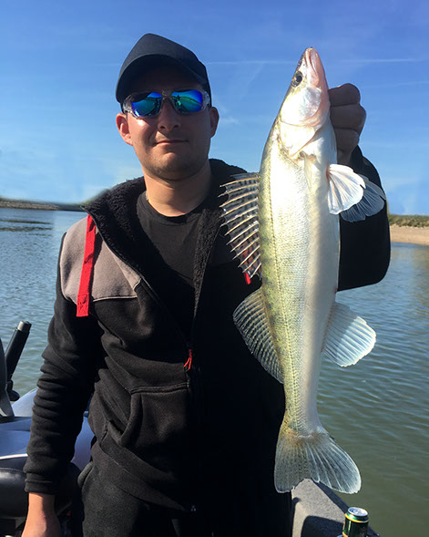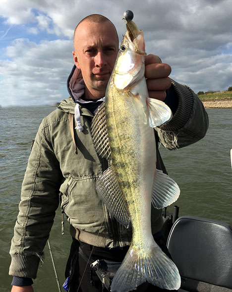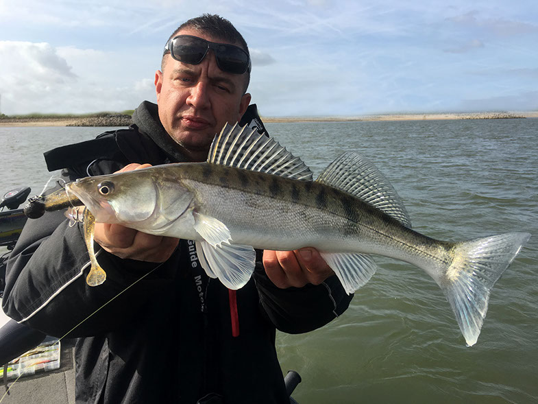 Strahlender Sonnenschein, und bis auf die ersten Morgenstunden hatten wir den ganzen Tag über gute Bedingungen. Zwar war es mit Böen von bis zu 30 km/h Wind nicht gerade angenehm, doch die warmen Sonnenstrahlen machten es allerdings erträglich, und so konnten wir uns voll & ganz auf das Wesentliche Konzentrieren. Neben der Köderführung mischten wir immer wieder Farbe,-Aktion und größe der Gummis durch, um die Vorlieben der Fische zu durchleuchten. Am Ende schafften wir es mit dem Forschergeist auf 41 Fische.