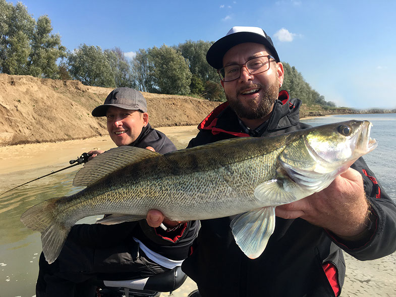 Nachdem wir 3 Stunden damit verbracht hatten, eine geeignete Slippe zu finden, die auch bei diesem Jahrhundert-Niedrigwasser noch gelingt, setzte sich die Suche nach dem beliebtesten Räuber auf dem Wasser weiter fort. Ein wenig entnervt, aber dennoch sehr zuversichtlich stellten wir uns dieser Aufgabe und fanden die ersten Fische bereits nach 5 minuten. Durch zahlreiche Spot-wechsel konnten wir im Laufe des Tages immer wieder die Standorte der Strahlenträger lokalisieren und provozierten so eine Vielzahl an Bissen von denen wir am Ende 24 von ihnen "verwandeln" konnten. Den Umständen entsprechend, war es für uns ein tolles Ergebnis.